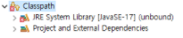 Spring호환문제 때문에 jdk를 17에서 11로 낮추기로 했다. 이 과정에서 이클립스를 삭제하고 다시 설치하는 과정을 걸쳤는데 Java Build Path의 Libraries에서 unbound관련 에러가 나타났다.
