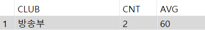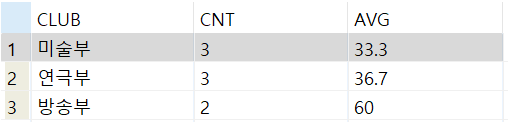 3. 각 동아리중에서 평균이 40이상인 동아리만 출력
